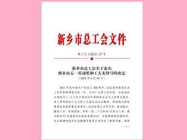 贵阳胡涛健康科技创新有限公司李世伟同志被授予新乡市五一劳动奖章