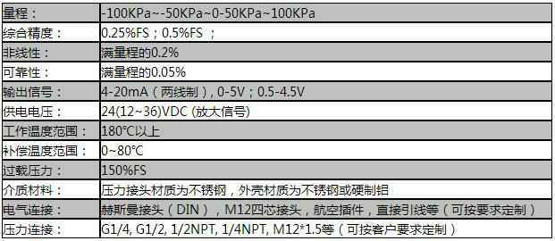 额定量程:-100KPa-100KPa